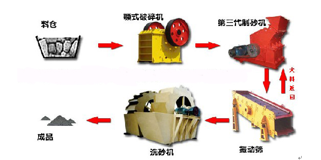 機(jī)制砂石設(shè)備由振動(dòng)給料機(jī)、顎式破碎機(jī)、制砂機(jī)、振動(dòng)篩和膠帶傳輸機(jī)等設(shè)備組合而成。根據(jù)不同的工藝要求,各種型號(hào)的設(shè)備進(jìn)行組合,滿足客戶的不同工藝要求。